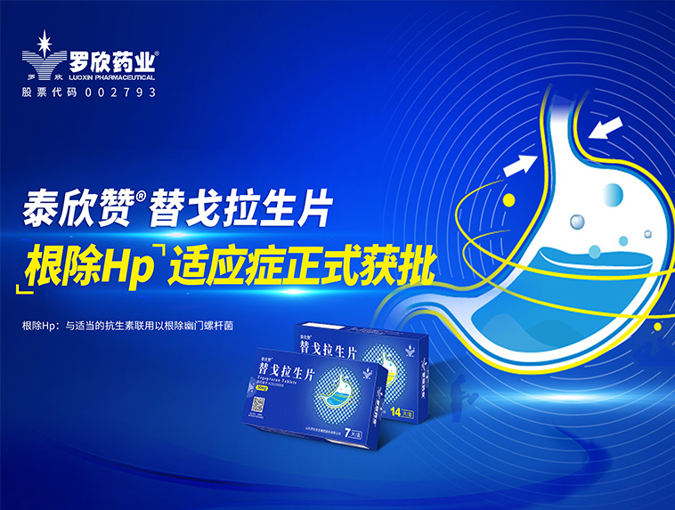 羅欣藥業(yè)創(chuàng)新藥替戈拉生片(商品名:泰欣贊?)新適應(yīng)癥“與適當?shù)目股芈?lián)用以根除幽門螺桿菌”獲批上市